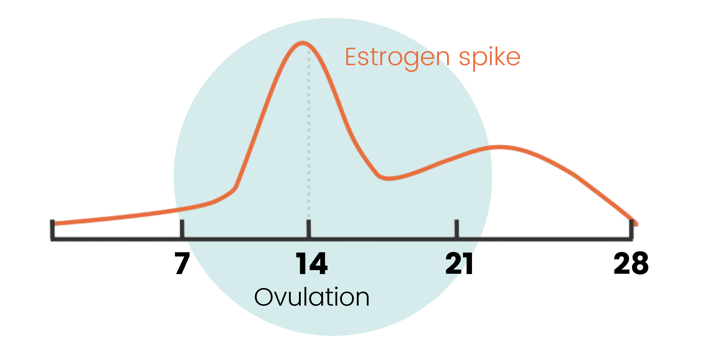Each month multiple eggs begin to develop in the ovaries. Estrogen levels increase and peak mid way through the menstrual cycle. This spike in estrogen triggers the most dominant egg to be released. The remaining eggs are not needed, and receive a signal to break down.